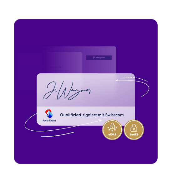 Signieren Sie rechtsgültig in der EU und in der Schweiz: Unser Partner Swisscom ermöglicht Ihnen die sichere Identifikation für elektronische Signaturen – wahlweise online oder persönlich vor Ort.