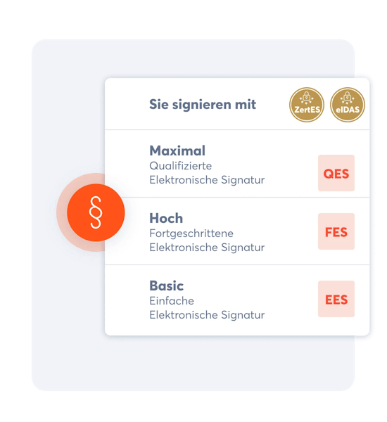 Die qualifizierte elektronische Signatur (QES) ist die einzige E-Signatur, die der handschriftlichen Unterschrift gesetzlich gleichgestellt ist.