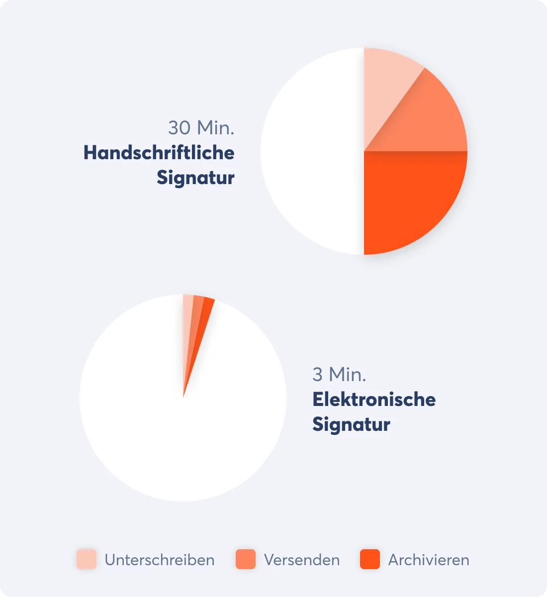 - Schneller unterschreiben: Kein Drucken, Scannen oder Versenden. Dokumente lassen sich in wenigen Minuten abschließen, auch mobil oder im Browser.