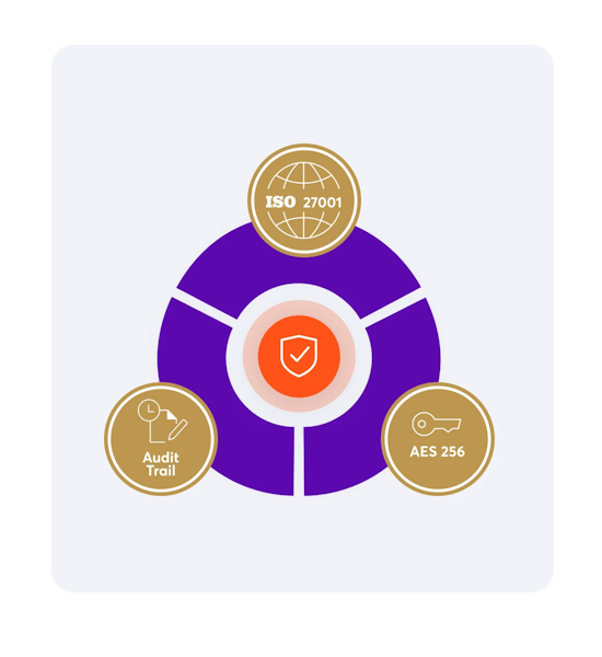 Die Systemarchitektur von Skribble ist nach ISO 27001 zertifiziert. Jede Transaktion wird mit einer fälschungssicheren AES-256-Verschlüsselung geschützt.