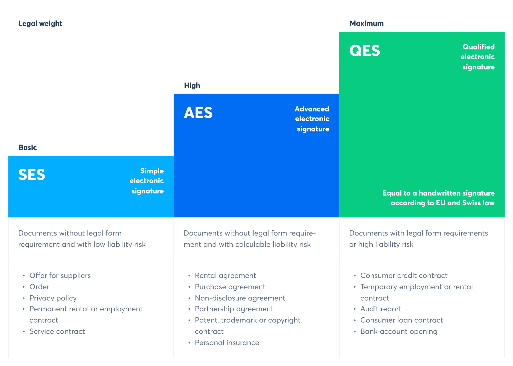 - QES: All AES controls plus a qualified certificate and qualified timestamp from a qualified trust service provider.