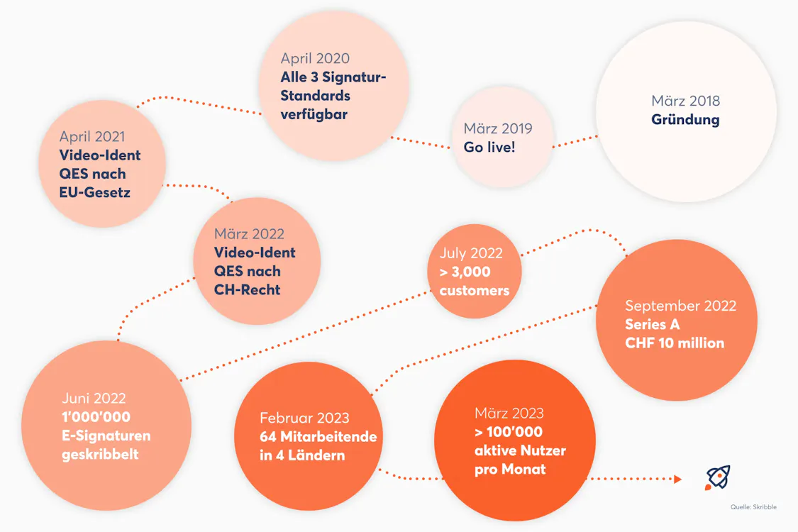 Aujourd'hui, 80% des entreprises en Europe signent encore à la main. Bien que la signature électronique soit clairement réglementée par la loi, elle était jusqu'à présent peu utilisée. Son utilisation était trop compliquée. C'est précisément là que Skribble intervient. Nous associons la sécurité à la simplicité pour une efficacité maximale. Télécharger le document, le signer de manière juridiquement valable en un clic et c'est tout. Vous économisez ainsi 34 CHF par document et réduisez vos coûts d'environ 90%. Et ce, dès la 1ère signature. Tous les composants techniques et juridiques sont intégrés dans notre solution. Combiné à une interface utilisateur très intuitive, cela fait de nous LE service de signature électronique qui non seulement couvre tout, mais que tout le monde comprend immédiatement et utilise volontiers.